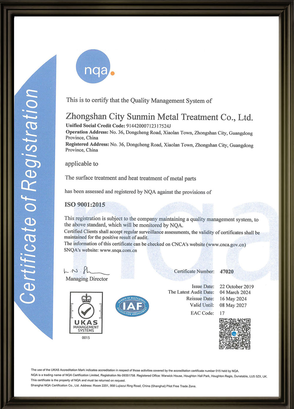 鍍黑工藝三民金屬處理千錘百煉表面改性處理和熱處理加工,精益求精!